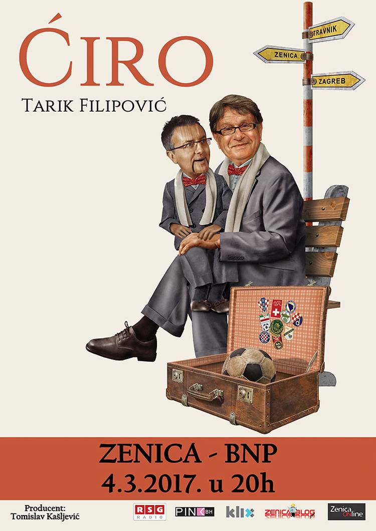 Tarik Filipović premijerno predstavlja svoju monodramu “ĆIRO“ o životu Miroslava Ćire Blaževića! Nova autorska predstava jednog od najpoznatijih glumaca u regiji, Tarika Filipovića – „Ćiro“, o životu Miroslava Ćire Blaževića, 4. marta, 2017. godine bit će premijerno odigrana u Zenici, u Bosanskom narodnom pozorištu, u 20 sati. Svečana pretpremijera održat će se u Travniku, rodnom gradu Miroslava Ćire Blaževića, dan prije, 3. marta, u Centru za kulturu.