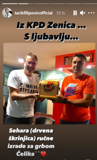 “Milijunska ekipa, realno”, napisao je Amel u komentaru. “Kraljica i dva cara”, “Lijepi ste, ali dama vas je zasjenila”, “Svoj na svome, ništa ljepše”, “Svaka čast, sjajno”, još su neki od komentara. Tarik je otkrio i da je dobio poklon s grbom zeničkog nogometnog kluba Čelik. “Iz KPD Zenica s ljubavlju”, napisao je uz fotografiju na kojoj mu prijatelj uručuje škrinjicu. “Sehara (drvena škrinjica) ručne izrade s grbom Čelika”, napisao je Tarik i dodao dva srca u bojama tog nogometnog kluba, piše zagrebački Index.hr.