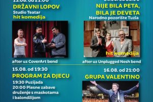 Drugu noć Festivala, publici će se predstaviti hit komedija Narodnog pozorišta Tuzla „Nije bila peta, bila je deveta“, dok će treću noć najmlađa publika uživati u sadržajima spremljenim za njih. Od 19:00 sati najmlađi će učestvovati u utrci za bebe „Puzijadi“, dok će od 19:30 h program upotpuniti plesne zabave i druženje sa balondžijom i maskotama.