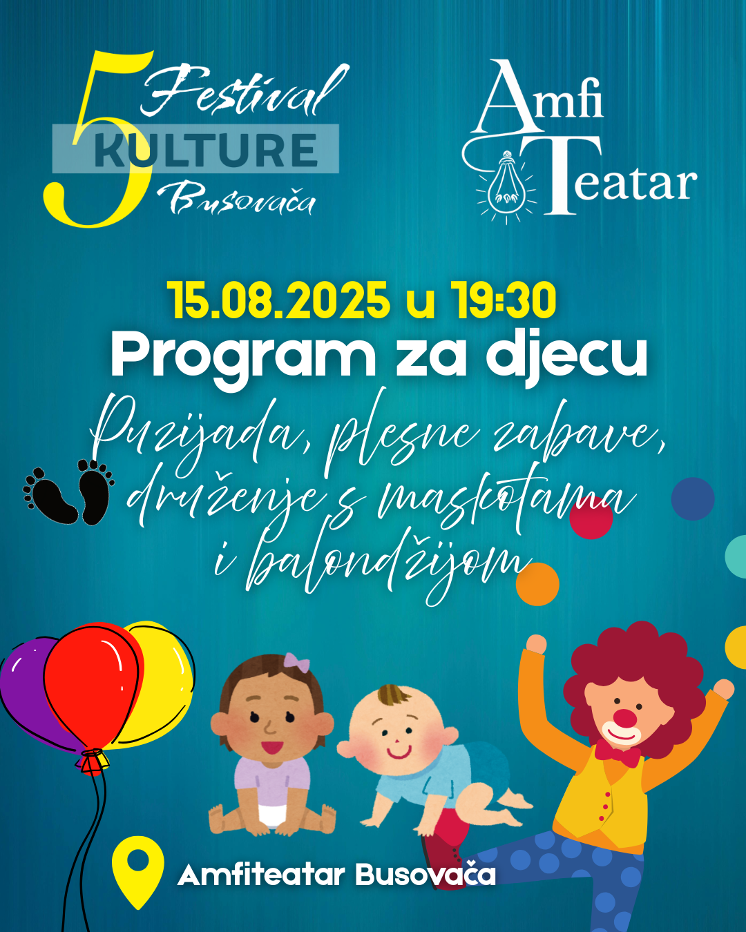 Festivalske aktivnosti se realizuju u festivalskom prostoru – AmfiTeatar na otvorenom u Busovači, osim koncerta koji će se održati ispred zgrade općine.