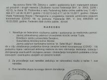 Direktor FUCZ, Fahrudin Solak, kazao je da je se zabranjuje svaki vid javnog okupljanja, rad kafića, barova, restorana, uslužnih objekata. Također, obustavlja se rad kulturnih institucija, poput kino sala, pozoršta, muzeja, galerija i slično.
