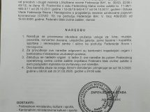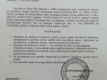 Tekstovi Naredbi koje od srijede u 6 ujutro do 31.marta u ponoć važe u cijeloj FBiH: zabrana rada većine objekata i javnih okupljanja