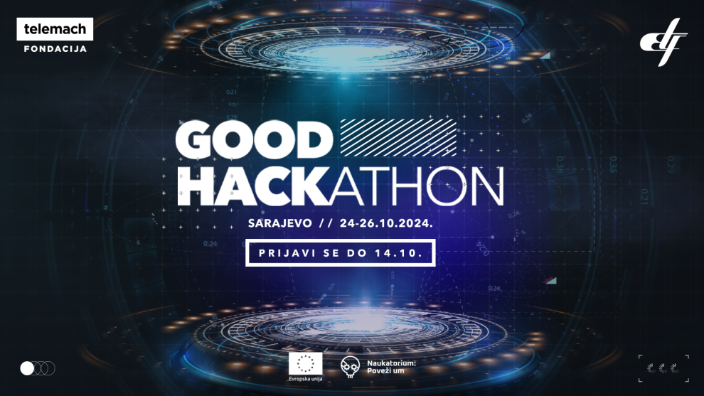 Hakerke i hakeri, spremite se za još jednu vrhunsku avanturu u tehnologiji i inovacijama! Treće izdanje GOOD HACKathona, takmičenja u razvoju inovativnih digitalnih rješenja za studentice i studente elektrotehničkih i srodnih fakulteta iz cijele Bosne i Hercegovine, sve je bliže. Prijavite se za ovaj uzbudljivi događaj, koji će se održati od 24. do 26. oktobra u Sarajevu, u organizaciji Telemach fondacije i Elektrotehničkog fakulteta u Sarajevu. Iskoristite priliku da primijenite svoje znanje i kreativnost za razvoj aplikacija koje mogu riješiti stvarne izazove i unaprijediti kvalitet života u našoj zemlji. Rok za prijave je 14.10.2024.