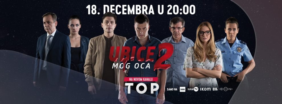 Od 18.12. na TOP TV kanalu pratite drugu sezonu serije – Ubice mog oca, koja je tokom prošle godine oborila sve rekorde gledanosti. Kanal je dostupan u osnovnoj analognoj ponudi, kao i u okviru D3 Start paketa na poziciji 13, Total TV pozicija 20 i EON-u. Također, kanali BN, Alternativna TV i Happy TV mijenjaju poziciju. Od sada kanal BN pratite na poziciji poziciji 14, Alternativnu TV na poziciji 28 i Happy TV na poziciji 67 u okviru D3 Start paketa. Kanal TOP u analognoj programskoj shemi je dostupan na sljedećim pozicijama: