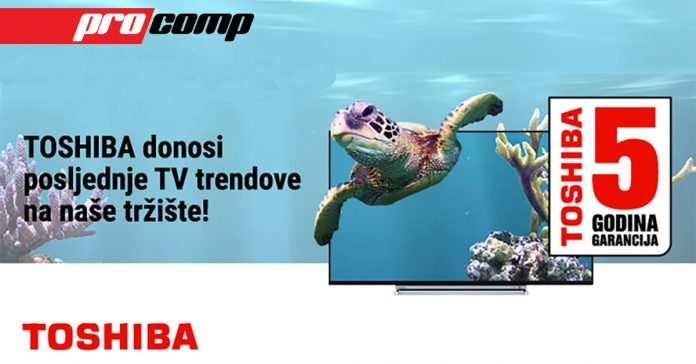 ProComp d.o.o na tržištu Bosne i Hercegovine, sada nudi i prestižne serije Toshiba TVmodela za nove generacije kupaca. Toshiba brand daje veću vrijednost svakodnevnom iskustvu gledanja televizije te svojim najnovijim tehnologijama pomjera granice dizajna i kvaliteta. Obećavajući neusporedivo bolju kvalitetu slike, najnoviji UHD i Smart televizoridonose širok raspon boja, veliku rezoluciju i sjajne detalje na ekranu.
