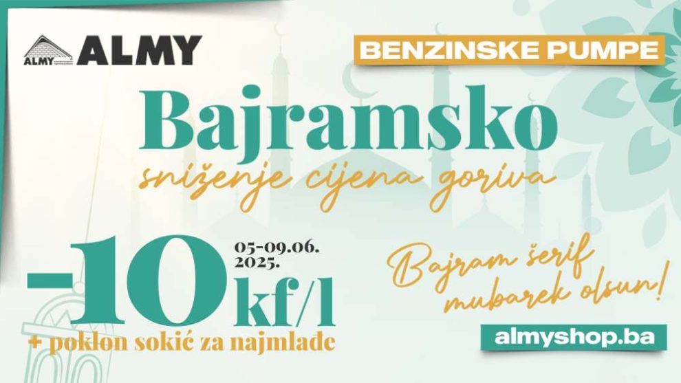 ✅ Tradicionalno bajramsko sniženje cijena goriva na benzinskim pumpama ALMY u Zenici, Sarajevu i Zavidovićima!
