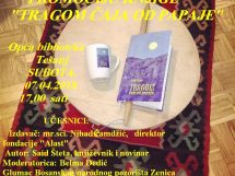 O knjizi „Tragom čaja od papaje“, kazao je, kako je ona na neki način presjek njegovog spisateljskog rada. Završavajući obraćanje, recitovao je pjesmu „Ispod Gradine“ koja je ušla u Zbornik poezije „Musa Ćazim Ćatić“ dok ga je na violini pratila Amina Džinalić sa numerom „1001 noć“. Da li je ova numera adekvatna simbolika ili ne, najbolje će kazati prisutni posjetioci sa kojima se autor uz promotore družio ostatak večeri u slastičarni „HD“ ispod Gradine.