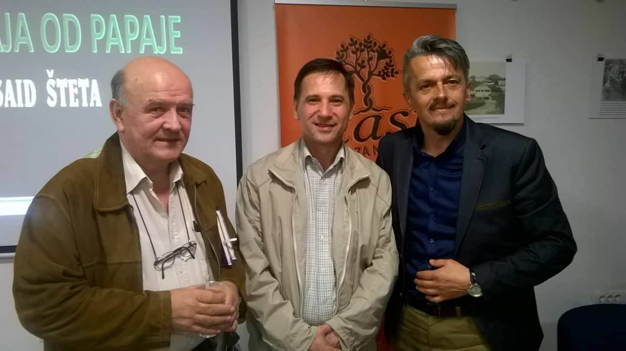 O knjizi „Tragom čaja od papaje“, kazao je, kako je ona na neki način presjek njegovog spisateljskog rada. Završavajući obraćanje, recitovao je pjesmu „Ispod Gradine“ koja je ušla u Zbornik poezije „Musa Ćazim Ćatić“ dok ga je na violini pratila Amina Džinalić sa numerom „1001 noć“. Da li je ova numera adekvatna simbolika ili ne, najbolje će kazati prisutni posjetioci sa kojima se autor uz promotore družio ostatak večeri u slastičarni „HD“ ispod Gradine.