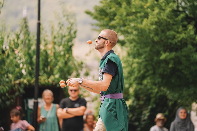 Dok su obilazili okolo, našli su se u strogom centru, što je privuklo pažnju Travničana, pa su se uskoro okupili i gledaoci i potencijalni učesnici.