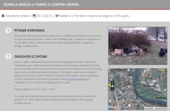 Tražio uklanjanje smeća, a odgovorili mu zaštitnici pasa – Ne zna čovjek da li da se smije ili plače kad dobiješ odgovor kao što je ovaj na ovoj stranici za pomoć građanima Grada Zenice, piše nam sugrađanin N.N..