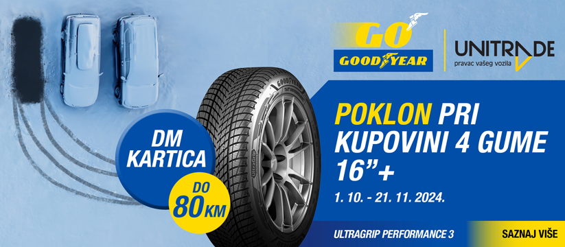 Osigurajte sigurnost na cesti tijekom hladnih mjeseci, a uz garanciju sigurnosti Goodyear je pripremio i poklon za vas – uz kupnju seta Goodyear zimskih ili cjelogodišnjih guma u dimenziji 16 cola i većoj, na poklon dobivate dm poklon karticu u vrijednosti do 80 KM!