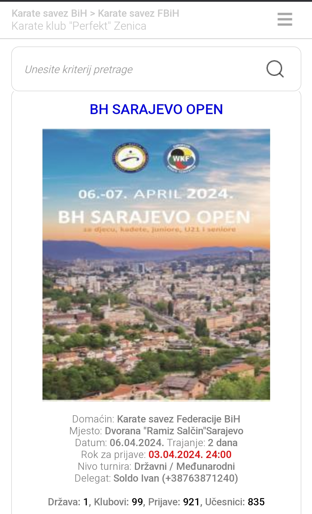 Poštovani roditelji, draga djeco i simpatizeri Karate klub Perfekt Zenica , Dana 06.04.2024.godine učestvovali smo na izbornom karate turniru BH SARAJEVO OPEN-u u Sarajevu. Organizator je karate savez Bosne i Hercegovine.