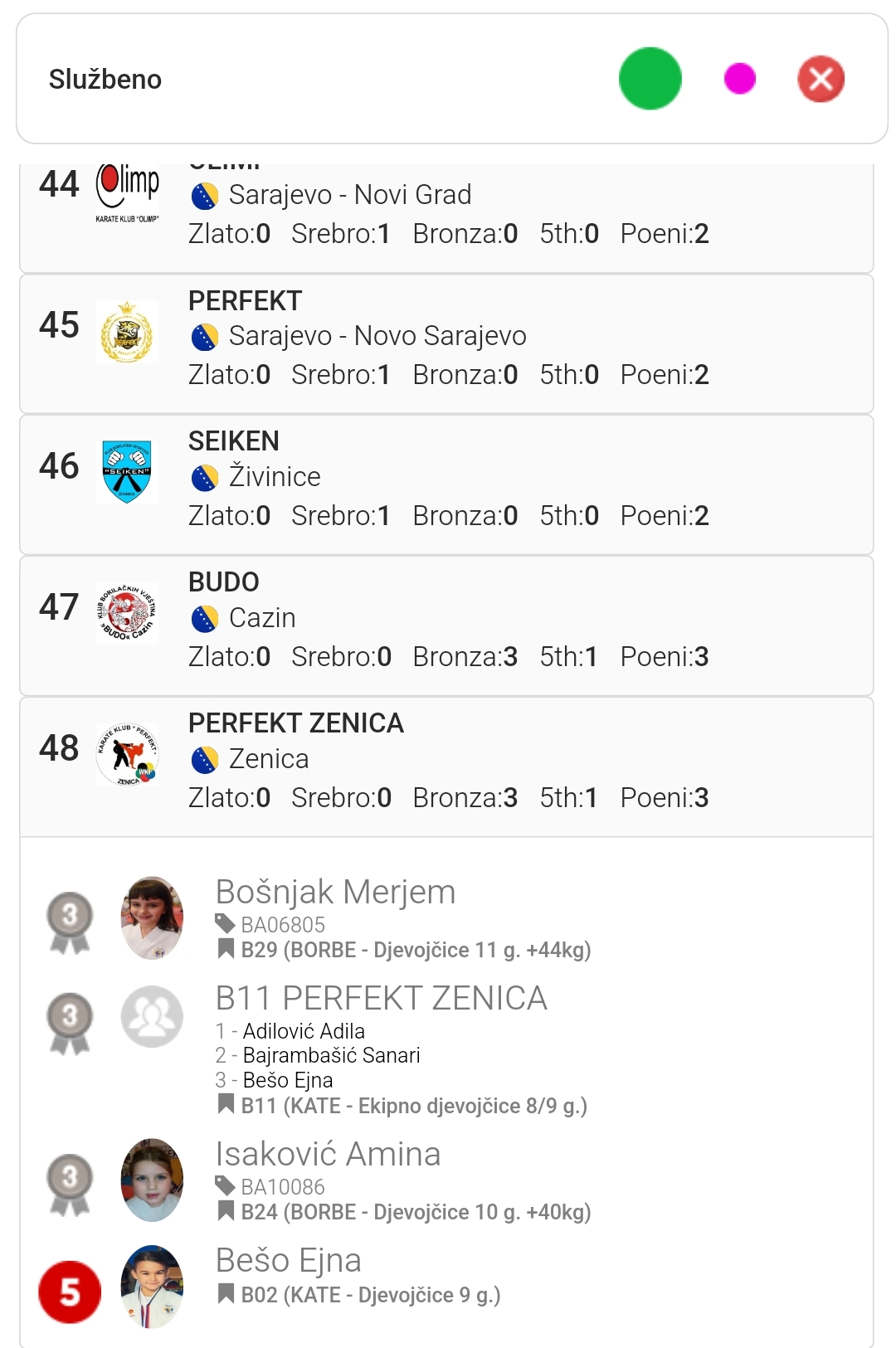 Naš Karate Klub ” Perfekt” Zenica je učestvovao sa 7 takmičara, nastupali smo u kategorijama kate, kate ekipno i borbe, te smo ukupno osvojili 3 bronzane medalje i jedno 5 mjesto.