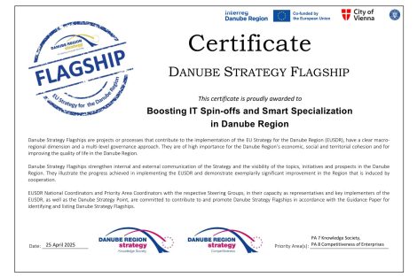 U proljeće su stigle sjajne vijesti, da je projekat SpinIT dobio certifikat “Danube Strategy Flagship”, a ZEDA je ujedno i jedina iz Bosne i Hercegovine koja je dobila status flagship projekta u okviru EUSDR-a za Prioritetnu oblast – Konkurentnost preduzeća.