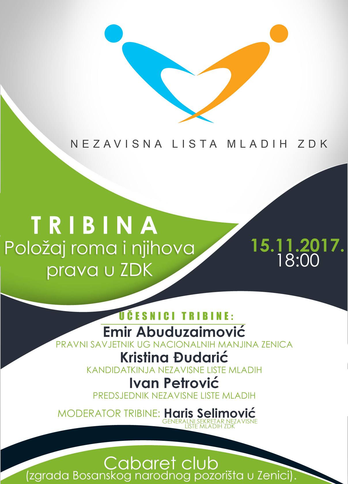 Tribina će biti održana u prostorijama Cabaret Cluba, Bosansko narodno pozorište Zenica, 15.11.2017. god. u 18:00