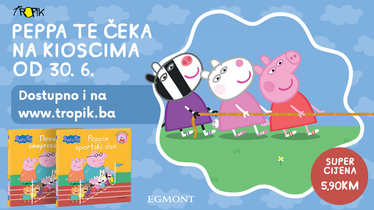Kolekcija Prvi put s Peppom probudila je veliko interesovanje kako djece, tako i roditelja. Poučne slikovnice o Peppinom prvom iskustvu kod zubara, na izletu s vrtićem, u lunaparku s roditeljima i u drugim svakodnevnim situacijama pronađite svakog četvrtka u prodaji! Propuštene naslove možete naručiti na www.tropik.ba, sa mogućnošću dostave u cijeloj Bosni i Hercegovini.