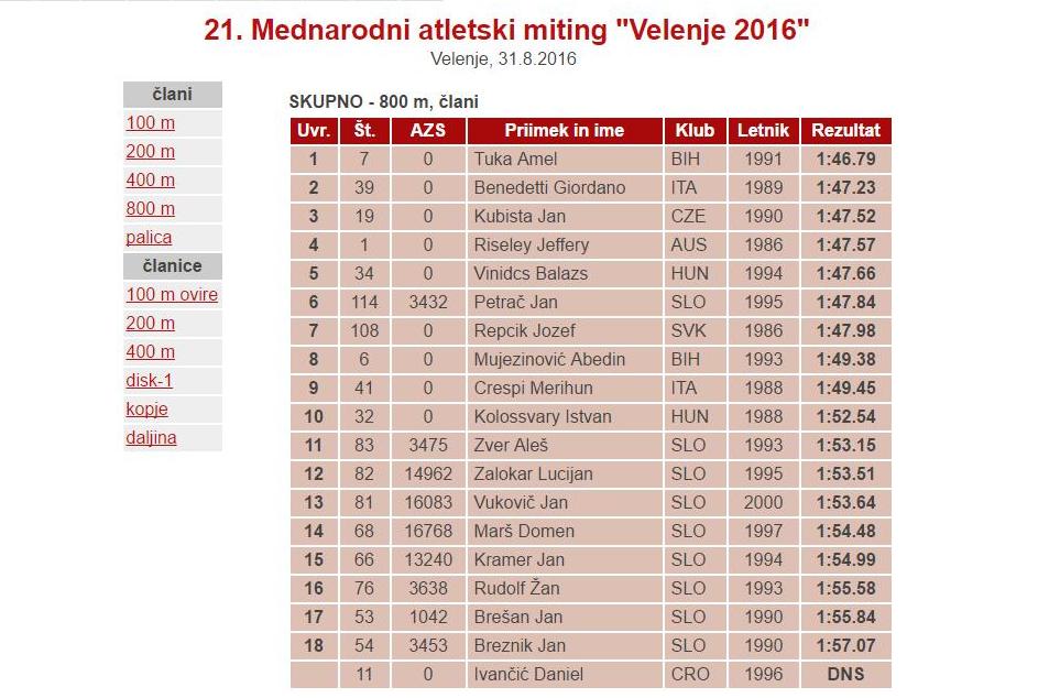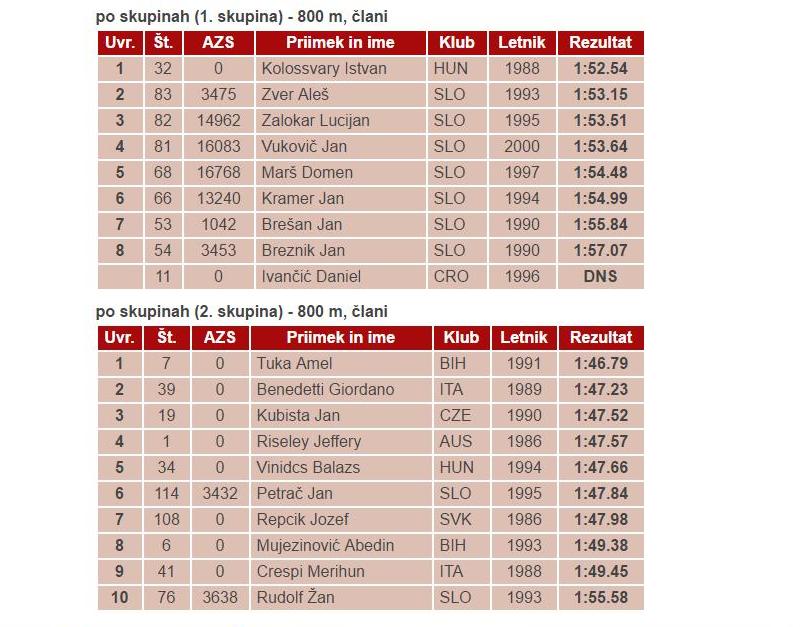 Tuka 1., Mujezinović 8. na mitingu u Velenju – Rezultatom 1.46.79 Amel Tuka je pobjedio večeras u trci na 800 metara u Velenju, na 21. Međunarodnom atletskom mitingu.