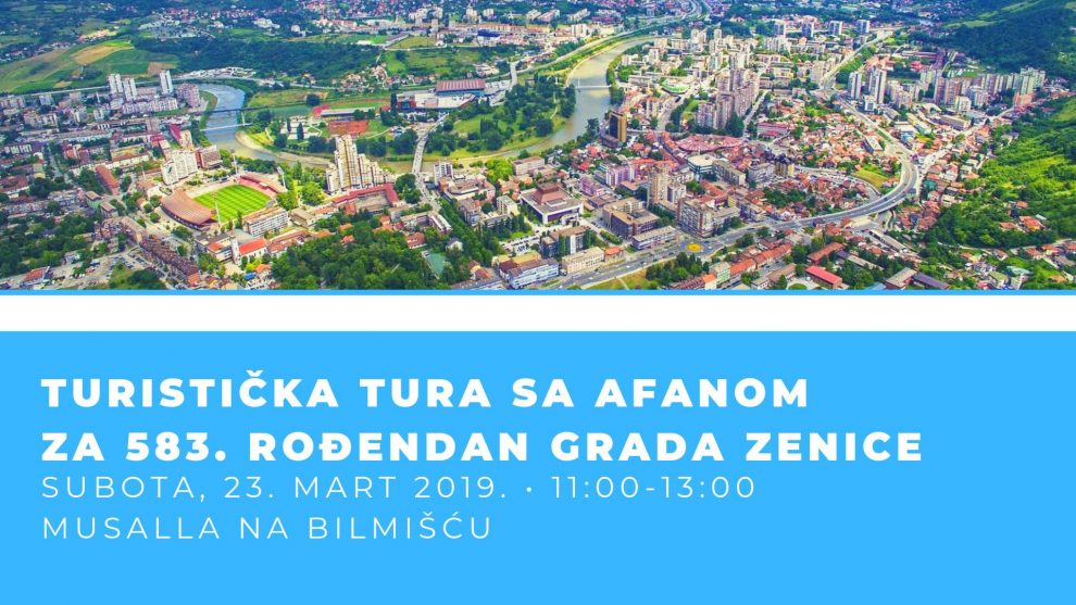 Turistička tura sa Afanom za 583. rođendan grada Zenice 23.03. u 11 sati – Zenica se, kao toponim, prvi put pominje u aktu Dubrovačke republike, datiranog na 20. mart 1436. godine. Od tog trenutka, do danas, proteklo je tačno 583 godine. Prve asocijacije na Zenicu su „grad čelika“, „grad zatvora“, „sivi grad“, „grad dimnjaka“ i slično, no Zenica ima itekako šta da ponudi.