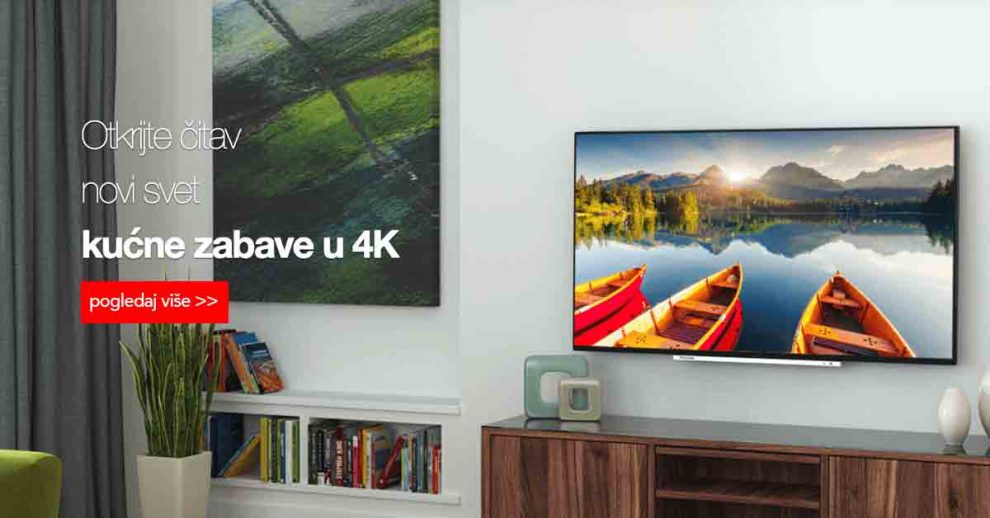 Nevjerojatna 4K rezolucija , s 8 miliona piksela, daje vam više detalja i teksture nego ikad prije. Korištenjem moćnog LCD LED pozadinskog osvjetljenja, znate da ćete dobiti savršenu sliku do samih rubova TV ekrana. Oduševit će vas i Smart TV koji vam omogućuje korištenje širokog spektra multimedijskih aplikacija izravno na TV ekranu.