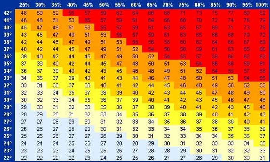 Tablica temperature i vlažnosti, te “humidexa” by Eurometeo