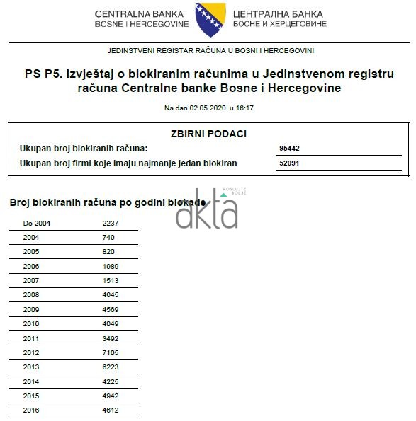 Prema ovom izvještaju 52.091 pravni subjekat ima blokiran najmanje jedan račun.