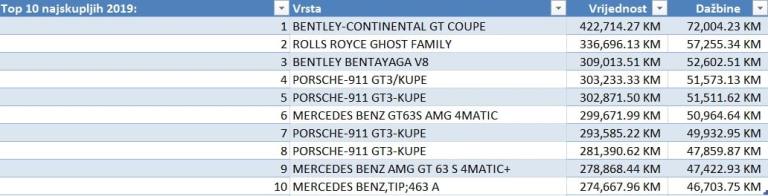 Najskuplje vozilo stiglo u BiH je „Bentley Continental GT Coupe“ koji je plaćen 422.714 KM.