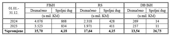 – Za finansiranje državnih institucija u 2024. godini raspoređen je iznos od milijarde i 20 miliona KM. Federaciji BiH je ukupno rapoređeno pet milijardi i 185 miliona KM, Republici Srpskoj dvije milijarde i 905 miliona KM i Brčko distriktu 291 miliona KM – dodaju iz UIO-a.