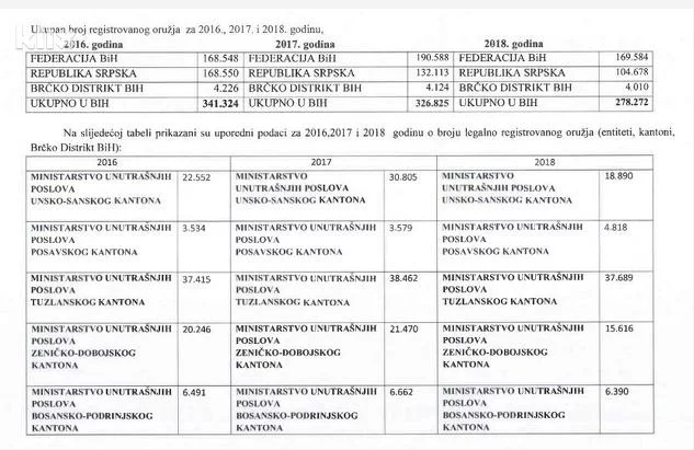 U ovom izvještaju navedeno je da je Koordinacioni odbor za kontrolu malog i lakog naoružanja u BiH tokom prošle godine radio i na prikupljanju statističkih podataka o legalno registrovanom oružju u BiH.