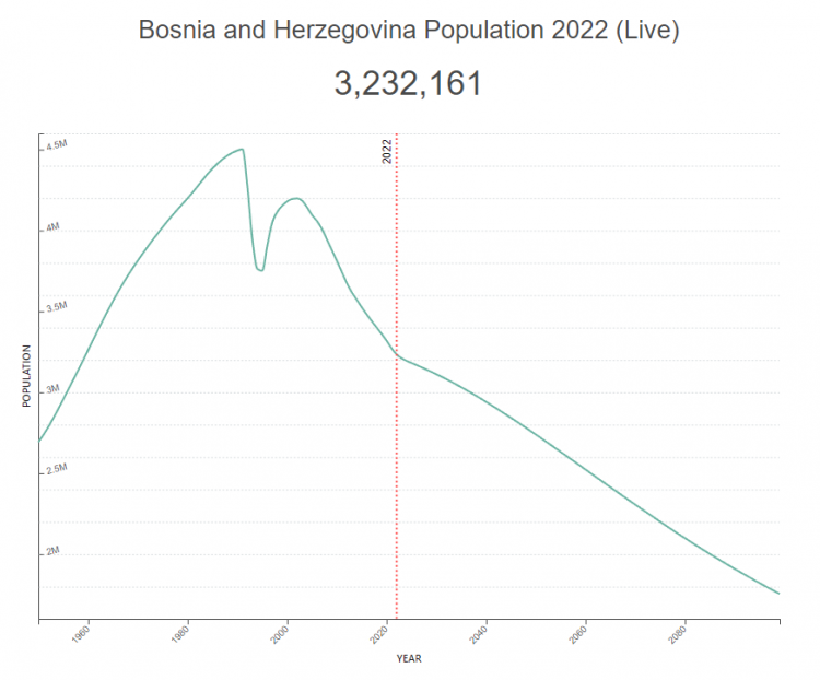 Platforma koristi podatke UN-a, a u njima se navodi kako u BiH trenutno živi 3.232.161 ljudi. Najviše ih živi u Sarajevu, potom Banjaluci, dok je na trećem mjestu Zenica.
