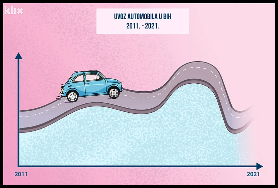 Podaci UIO BiH pokazuju da je u odnosu na ranije godine, u 2020. i 2021. zabilježen pad broja uvezenih vozila u Bosnu i Hercegovinu, što se može pripisati brojnim problemima koje je pandemija prouzročila širom svijeta.