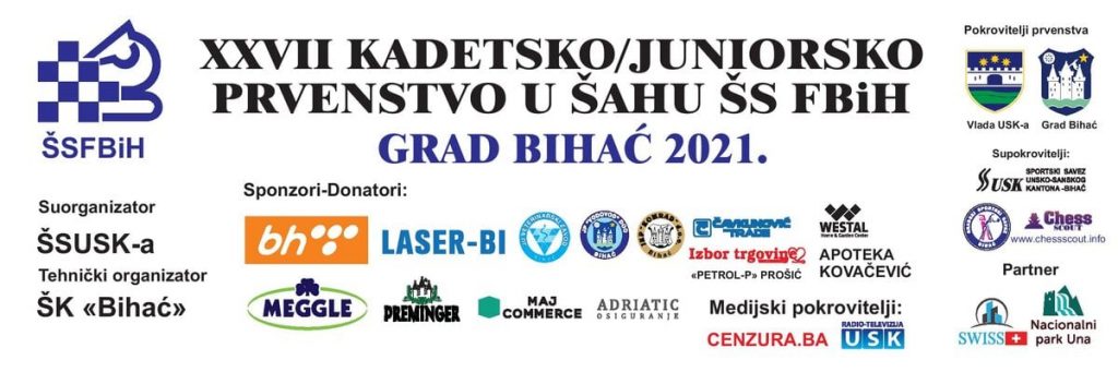 U Bihaću počinje 27. pojedinačno kadetsko/juniorsko prvenstvo ŠS FBiH- Šahovski savez Federacije BiH i ŠK Bihać, u hotelu Swissplus u Bihaću organizuju 27. kadetsko i juniorsko prvenstvo ŠS Federacije Bosne i Hercegovine. Organizator je ŠSFBiH, a tehnički organizator je Šahovski klub „Bihać“, iz Bihaća.