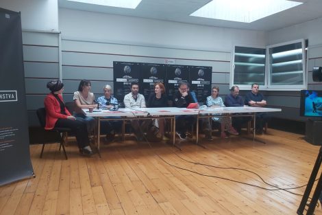 Tim povodom na konferenciji za medije su govorili: direktor Bosanskog narodnog pozorišta Zenica Miroljub Mijatović, ispred produkcijskog tima Scene MESS, Sarajevo Hana Bajrović-Čardaković, autorica i dramaturginja Asja Krsmanović, reditelj Nermin Hamzagić, glumice i glumci iz ansambla predstave: Gordana Boban, Mirvad Kurić, Selma Mehanović i Benjamin Bajramović i autor muzike Enes Zlatar.