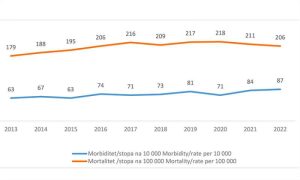 Stopa obolijevanja (morbiditeta) od malignih neoplazmi u 2022. godini iznosila je 87 na 10. 000 stanovnika, 2021. godine 84, a usporedbe radi, 2013. odnosno 2014. iznosila je 63, odnosno 67, pokazuju podatci Zavoda za javno zdravstvo F BiH.