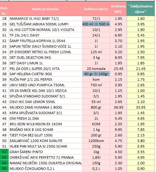 ‘’Listu smo korigovali u odnosu na raniji period, uvrstili smo još nekoliko artikala i vjerujemo da ćemo na ovaj način doprinijeli kvaliteti življenja svih, a posebno osjetljivih kategorija stranovništva poput penzionera i radnika sa nižim primanjima’’, saopštili su iz Udruženja poslodavaca FBiH.