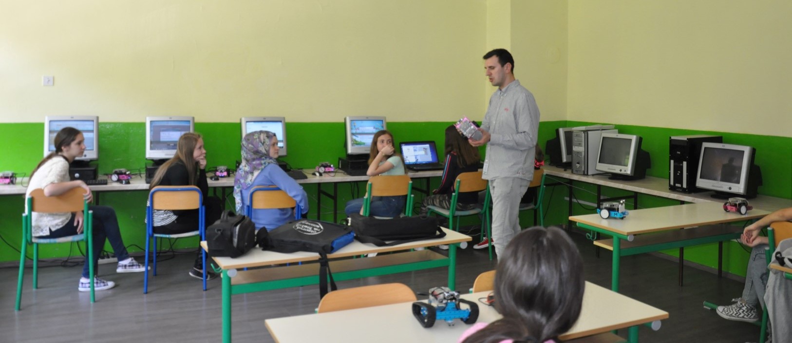 Djevojke u informaciono-komunikacionim tehnologijama – u INPUT-u obilježen dan djevojaka u IKT – Centar za mlade INPUT već četvrtu godinu za redom obilježava Međunarodni dan djevojaka u IKT. Od 26.04. do 28.04.2018. godine organizovano je niz edukativnih radionica za djevojke iz oblasti informaciono-komunikacionih tehnologija. Ove godine je cilj bio da djevojke upoznamo sa programiranjem i robotikom, te su organizovane radionce u pojedinim školama u Zenici i u prostorijama Centra za mlade INPUT. Posebnu zainteresovanost i zadovoljstvo iskazale su učenice u OŠ “Hamza Humo” Babino. Djevojke kroz tri dana edukacije su imale mogućnost da se upoznaju sa osnovim programskim jezicima, programiranjem mBotova, arduino, raspberry Pi, konstruisanjem i programiranjem Lego Mindstroms i 3D printanjem.