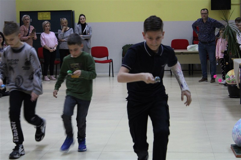 2. trčanje sa pisanicom u žlici, pobjednik je Luka Lopičić iz Ia. razreda,