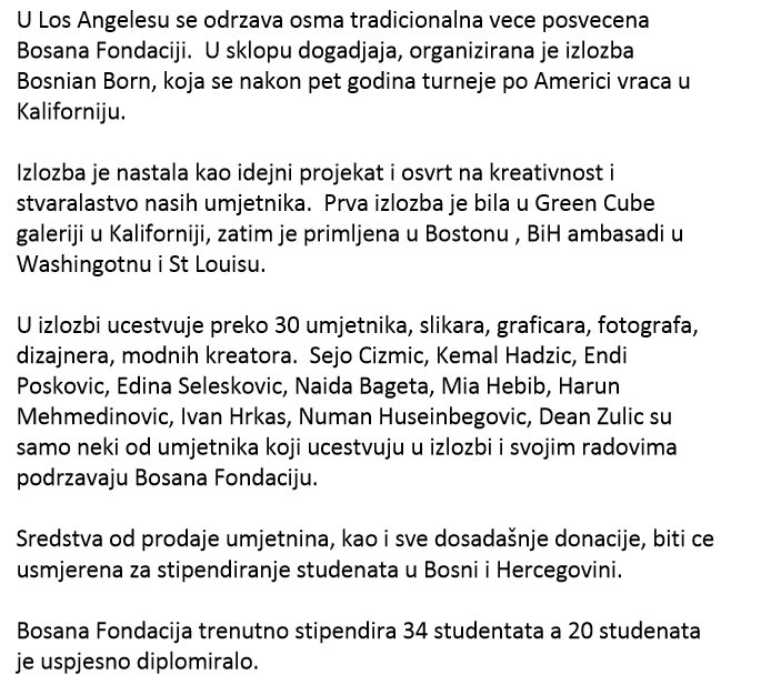 U Los Angelesu se održava osmo tradicionalno Veče posvećeno Bosana Fondaciji