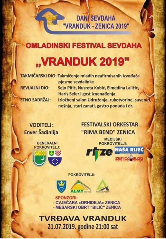 U nedjelju na Vranduku 13.Omladinski festival sevdaha „Vranduk 2019“ u 21sat – Press Dani sevdaha „Vranduk-Zenica 2019“. U prostorijama Cabaret kluba održana je press konferencija povodom kulturno-zabavne manifestacije XIII Dani sevdaha „Vranduk-Zenica 2019“.