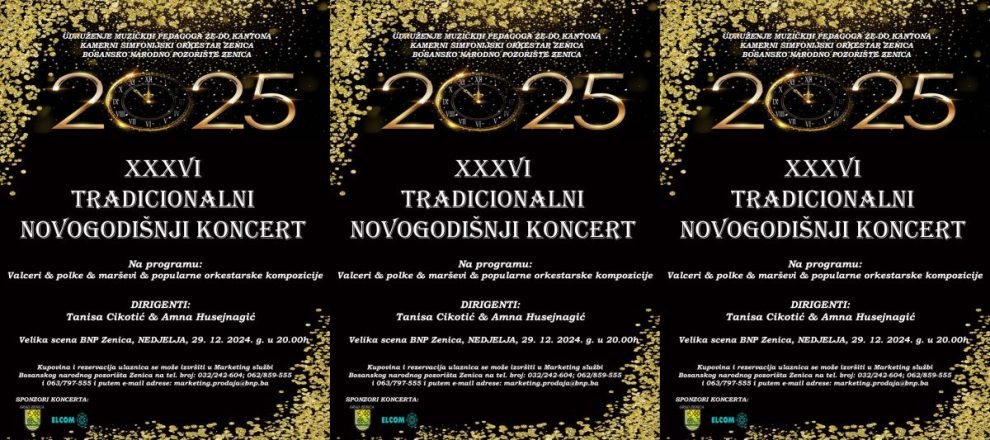 Na kraju ovogodišnje koncertne sezone Bosanskog narodnog pozorišta Zenica bit će upriličen XXXVI tradicionalni novogodišnji koncert u nedjelju, 29. decembra u 20 sati u Bosanskom narodnom pozorištu Zenica.