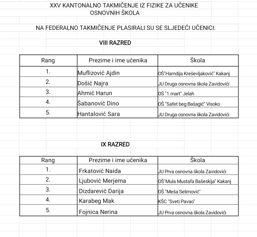 Na takmičenju su učestvovali učenici VIII i IX razreda, a plasman na federalno takmičenje i zavidan rezultat su ostvarili učenici: