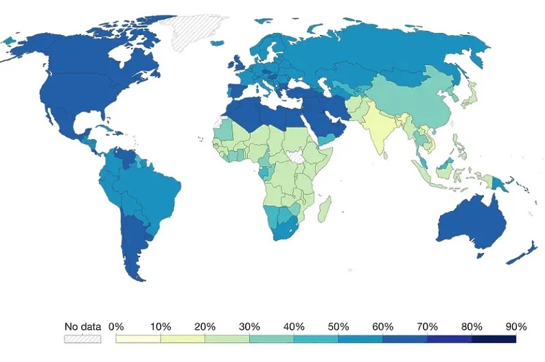 Mapa, koju je objavio Our World in Data, koristi podatke prikupljene iz 195 zemalja širom svijeta i pokazuje ogromnu podjelu u stopama gojaznosti.