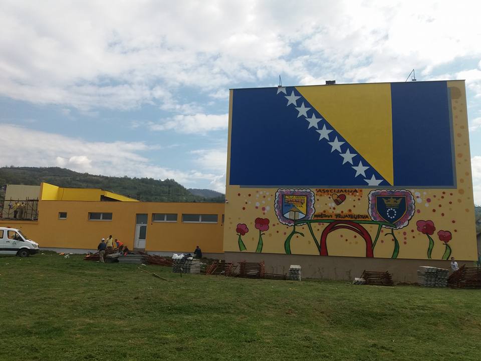 U Peharama završen prilazni put i “utopljavanje” fasade škole “Alija Nametak” U Osnovnoj školi “Alija Nametak” u Peharama će biti ozvaničen završetak projekta “energetsko utopljavanje škole”, kao i predstavljanje velikog murala sa bh. zastavom koji se nalazi na zidu južne strane ove škole.
