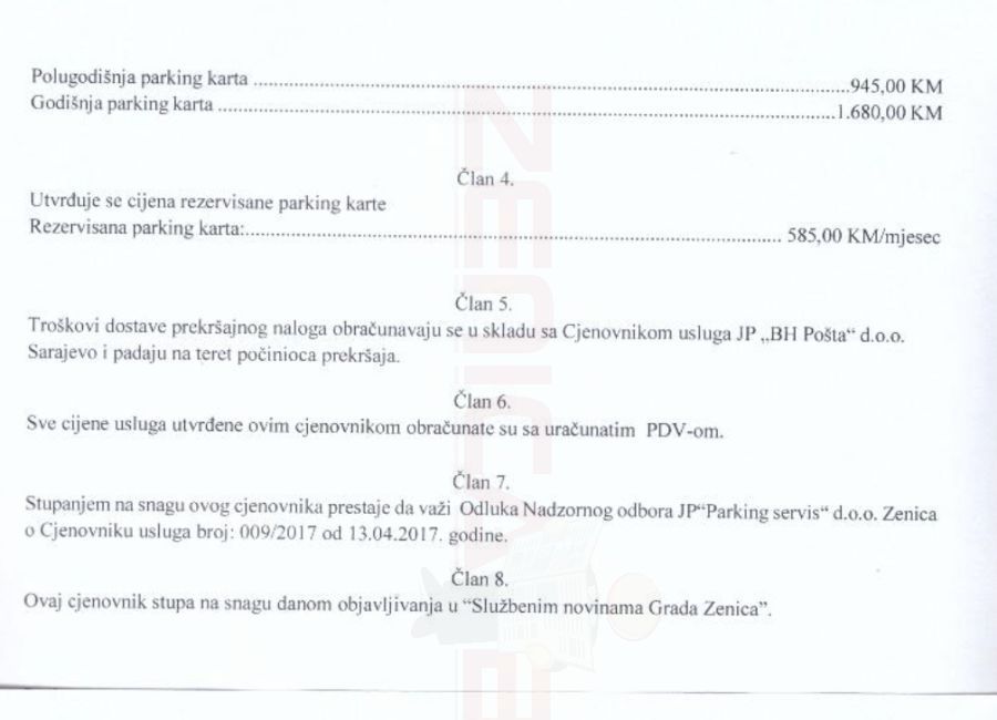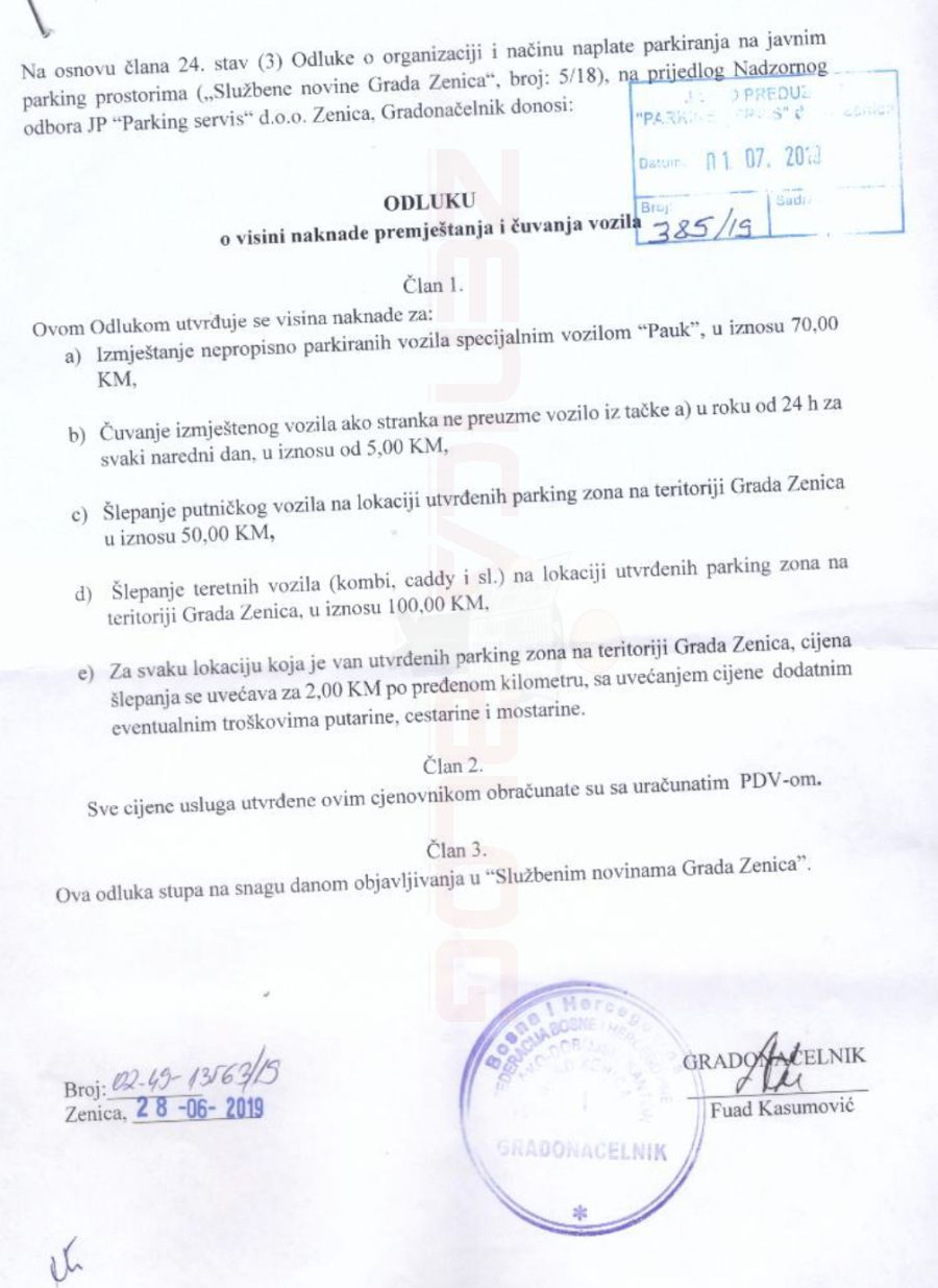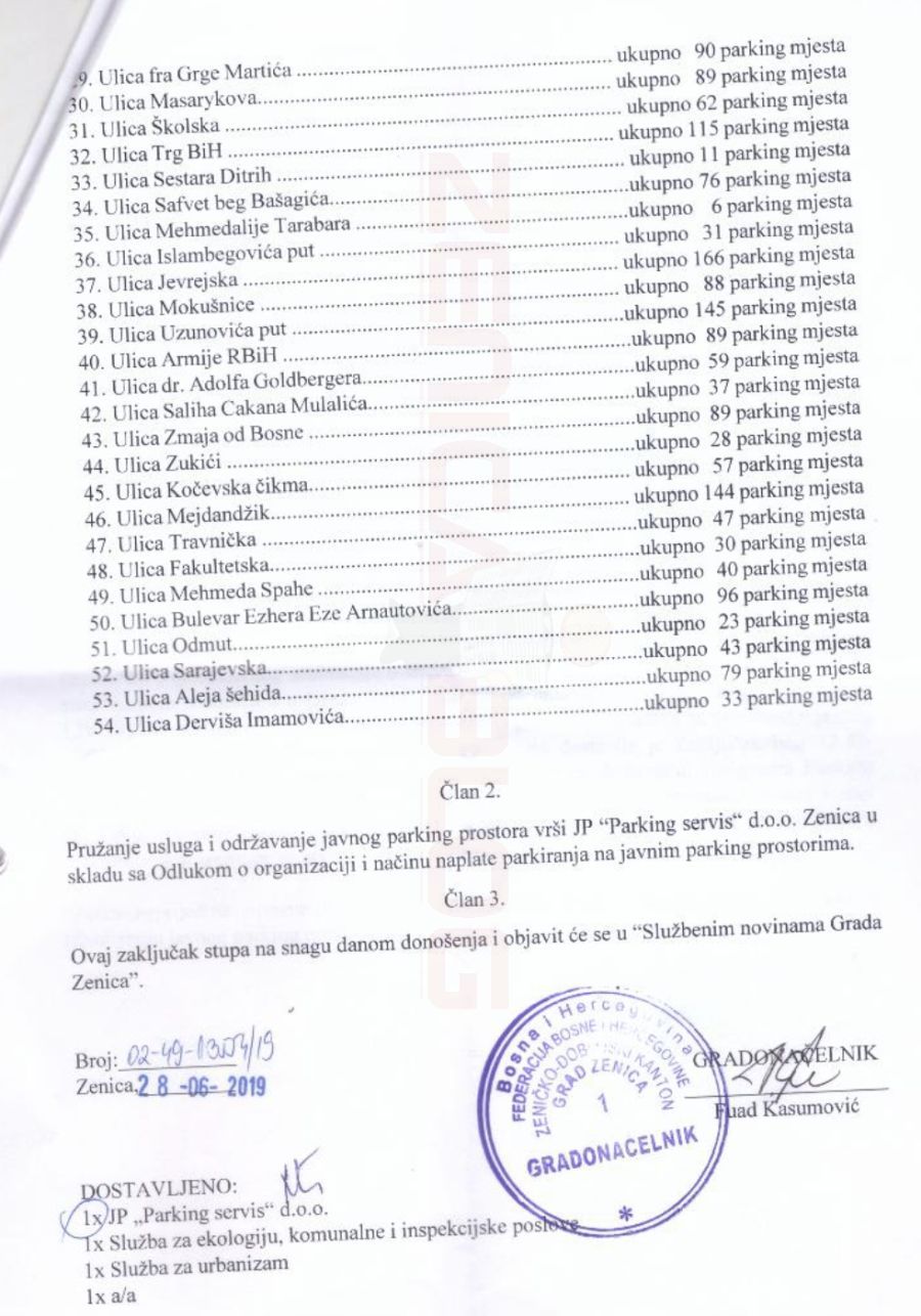 Nadzorni odbor i Uprava preduzeća JP „Parking servis“ d.o.o. Zenica, obavještavaju građane da je Zaključak Gradskog vijeća nezakonit i ne može suspendirati navedenu Odluku, niti odredbe Odluke koje se odnose na početak primjene iste.
