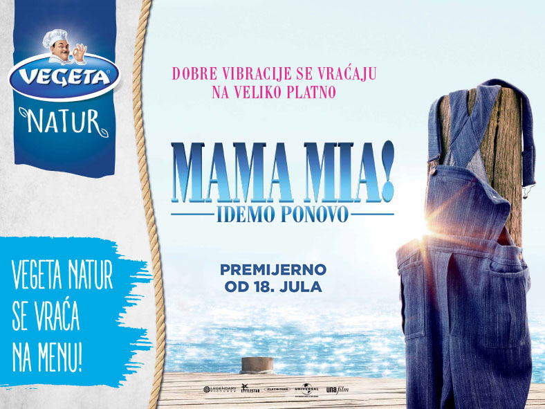 Dobre vibracije se vraćaju na veliko platno, a Vegeta NATUR na meni! Vegeta NATUR plasirana je na naše stolove 2010. – iste godine kad je pjesma švedske pop grupe ABBA „Mamma mia!“ ostvarila 6. mjesto na britanskoj muzičkoj ljestvici. Mjuzikl Mama Mia! deveta je najduže