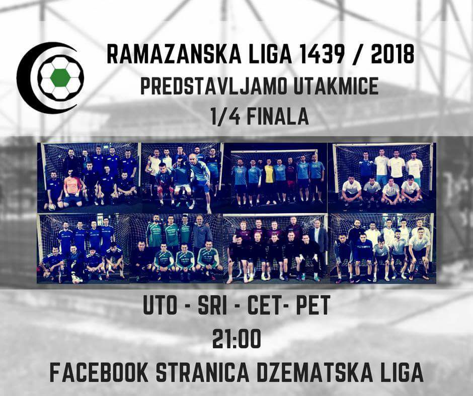 U subotu 1/4 finala Ramazanske Lige – Nakon uzbudljivih ramazanskih noći kroz utakmice grupne faze Ramazanske lige, u subotu 2.6.2018. nas očekuju utakmice knock-out faze nakon čega ćemo saznati i polufinaliste ovogodišnje Ramazanske lige. Ukupno četiri utakmice 1/4 finala će se odigrati za jednu noć između ekipa koje su se plasirale u ovu fazu takmičenja. U polufinalu će se sastati pobjednici susreta Pridražići – Potok i Lokvine – G.Gračanica sa jedne strane i pobjednici susreta Brist – Ensar i G.Zenica – Nur Han sa druge strane.