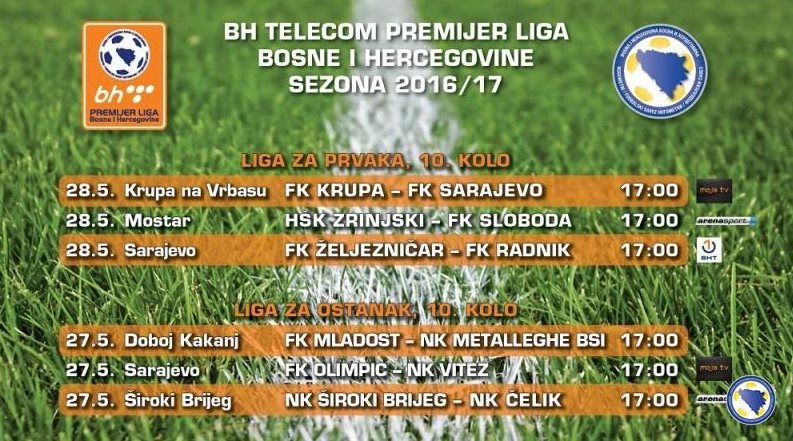 Utakmice 10.kola Lige za opstanak i za prvaka – Sve utakmice 10.kola BH Telecom Premijer nogometne lige BiH – za opstanak i za prvaka na rasporedu su u subotu i nedjelju u 17 sati. U subotu se igraju utakmice Lige za opstanak, a u nedjelju Lige za prvaka.