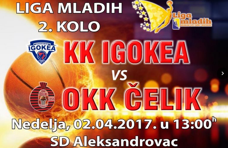 2. kolo “Lige mladih” KSBiH, selekcija U-18, juniori “Čelika” gostuju kod ekipe KK “Igokea”, Aleksandrovac. Utakmica se igra u nedjelju 2.4.17. u sportskoj dvorani Aleksandrovac sa početkom u 13h.