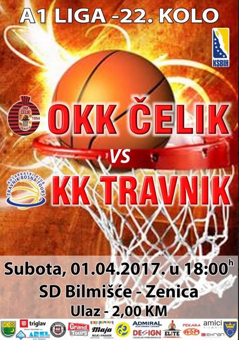 U subotu na Bilmišću: OKK Čelik – KK Travnik – Zbog odigravanja tenis mečeva, Davis cup reprezentacije BiH i zauzetosti Gradske Arene u periodu od 29.3. do 10.4., utakmica 22. kola “A1 Lige” između OKK “Čelik” – KK “Travnik” igra u subotu 1.4.17. u dvorani na Bilmišću sa početkom u 18h.