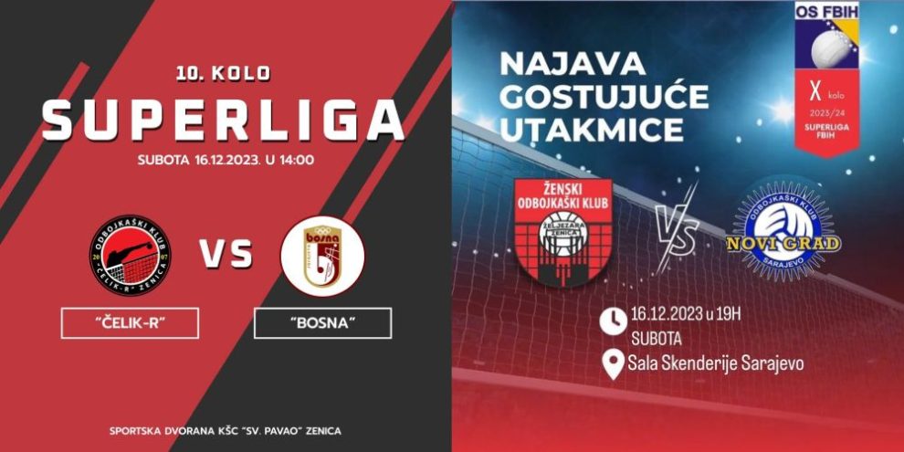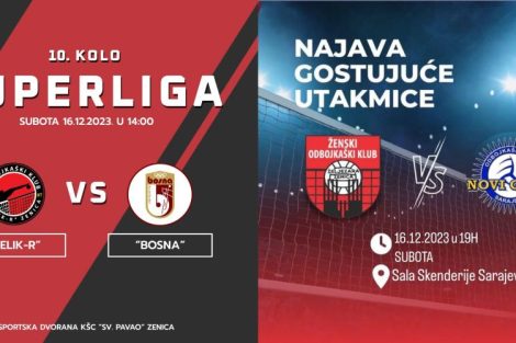 Ove subote, 16.12. 2023. godine, zeničke ekipe u Superligi Federacije BiH za žene, grupa Jug, sezona 2023/2024. igraju svoje utakmice iz 10.kola. Inače, ovo je prvo kolo iz drugog dijela sezone nakon kojeg slijedi zimska pauza do kraja januara 2024.godine.