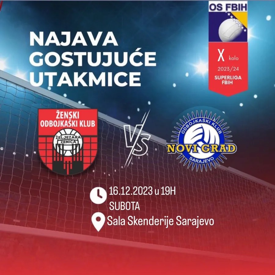 Odbojkašice ŽOK “Željezara” Zenica, u 10.kolu gostuju kod ekipe OK „Novi Grad“ u Sarajevu, koja je lider na tabeli sa omjerom od 8 pobjeda, jedan poraz i 24 boda. Zeničanke su na omjeru od 7 pobjeda, 2 poraza, 4. mjesto sa 18 bodova. U 1.kolu, u Zenici, bilo je 1:3 za gošće iz Sarajeva.